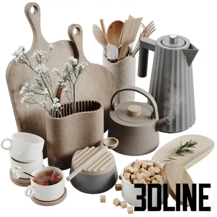 Decorative kitchen set H M dishes and pears (3dline.net)