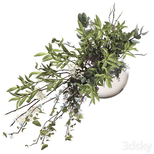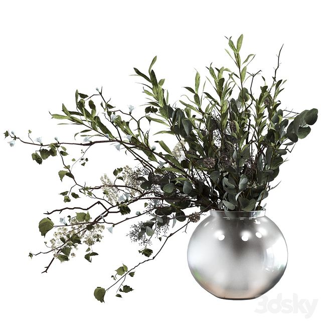 3dline – Bouquet of branches with foliage, sprigs of eucalyptus, olive and flowers 0