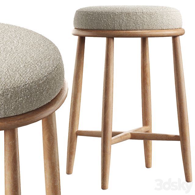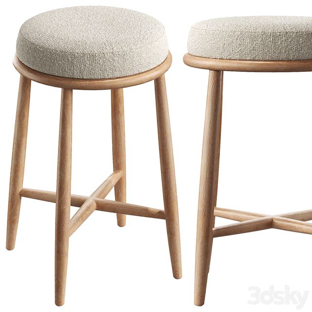 Home Furniture Chair 3dline – Hobbs Cerused Natural Oak Wood Counter Stool 0