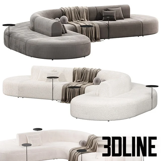 **ARTIKO modular sofa 3d model:** Define a grand, luxurious space with this exclusive **ARTIKO modular sofa 3d model** by MDD. This **contemporary curved sectional** features a soft, flowing silhouette and high-quality fabric upholstery (including a bouclé option), making it essential for designers creating large, high-end living rooms or luxury hotel lobbies. The set includes integrated side tables and decorative throws for realistic staging.