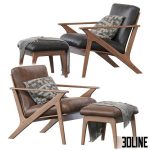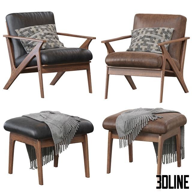 Baxton Studio Bianca Mid-Century Modern Walnut Wood Distressed Faux Leather Lounge Chair And Ottoman Set 0(3dline.net)