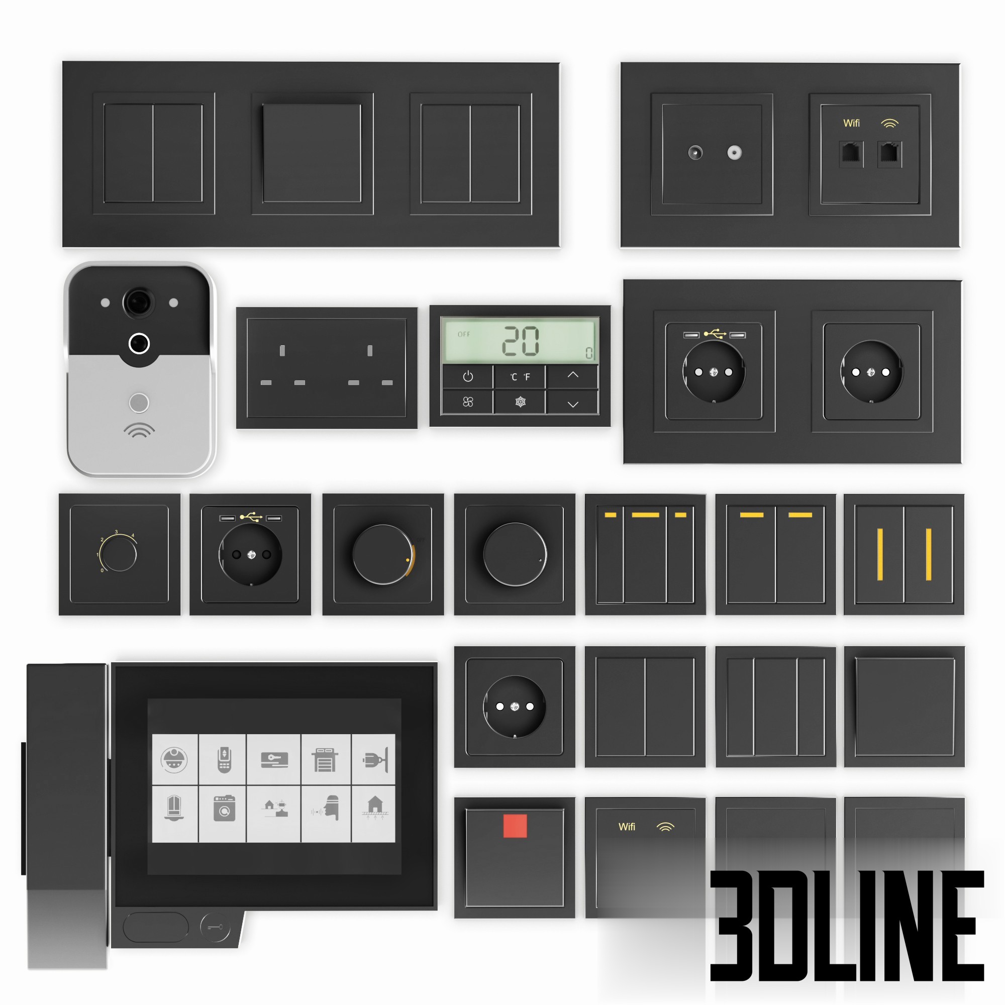 Home Technology Miscellaneous Black switches and sockets(3dline.net)
