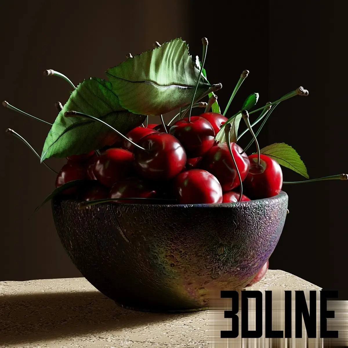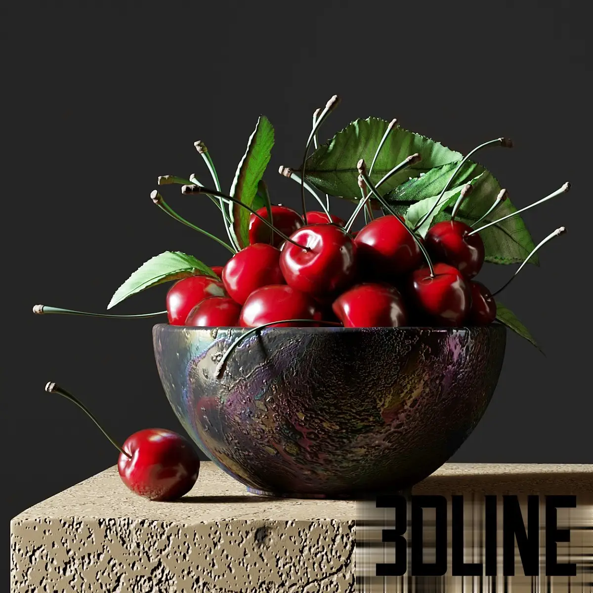 (H1) Premium 3D Model: Realistic Fresh Cherries in Bowl