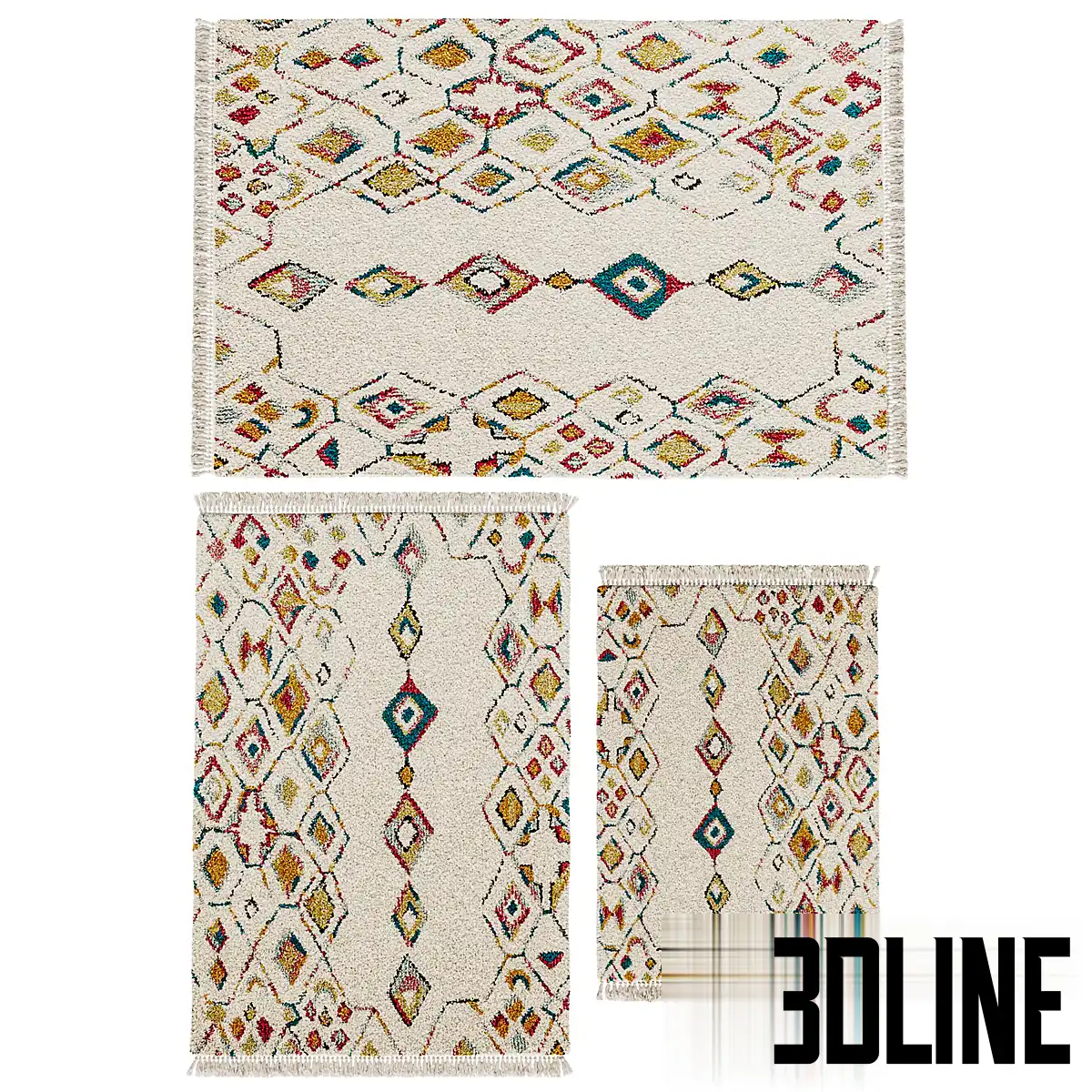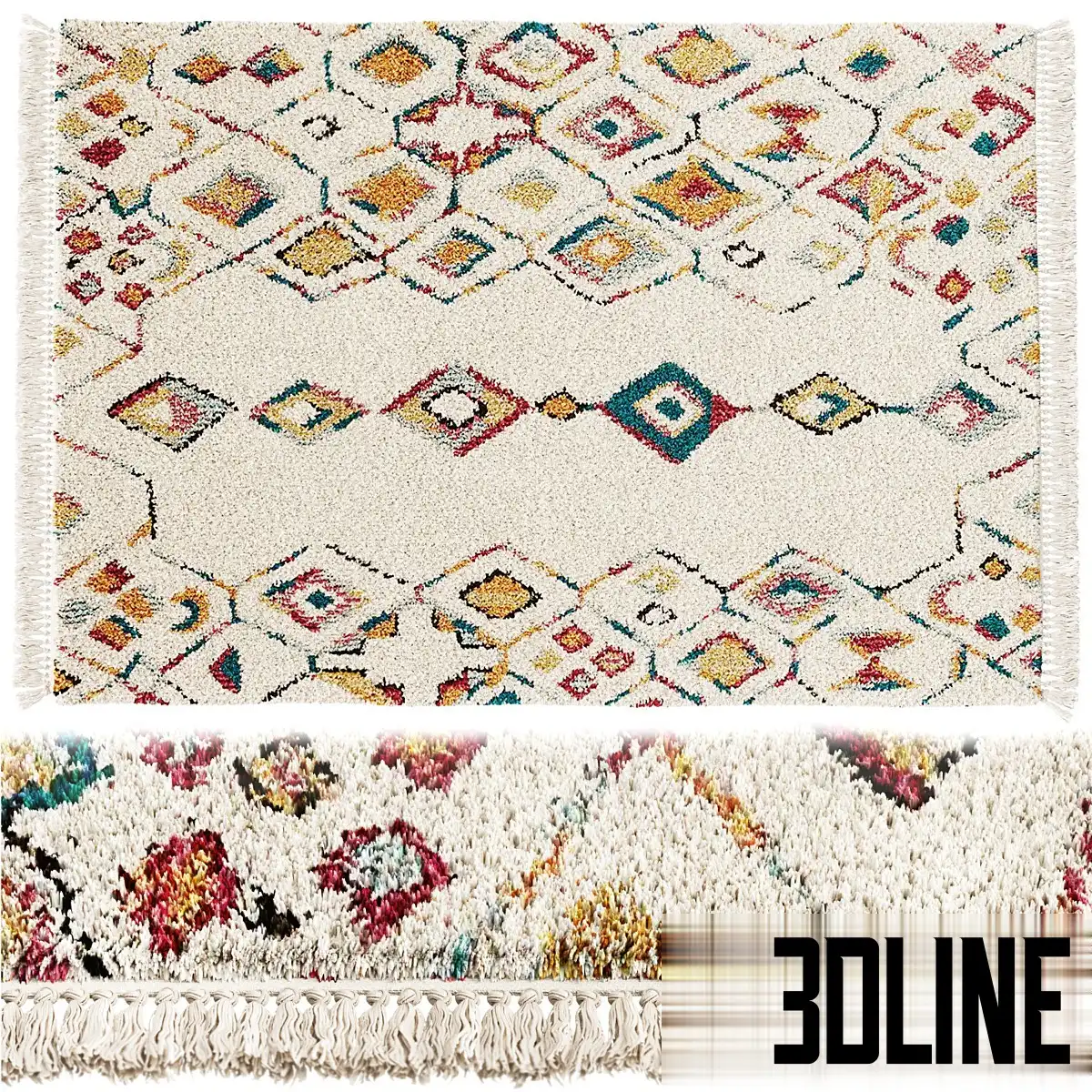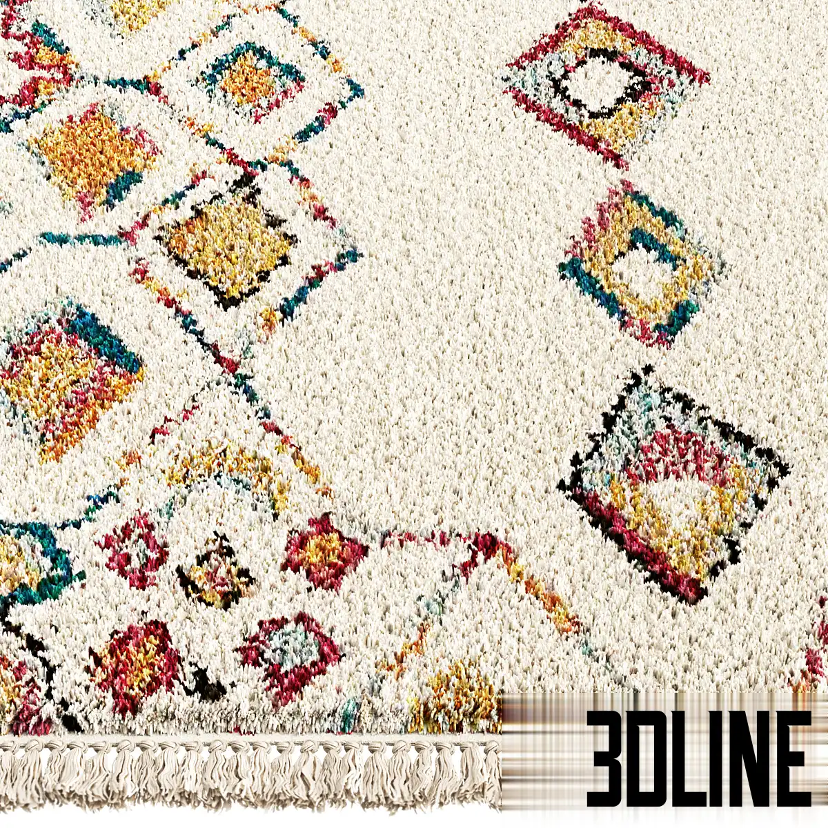 Introduce warmth, texture, and a pop of colorful personality with this high-detail 3D model of the Taneti rug by LA REDOUTE INTERIEURS. This shaggy carpet is rendered in the traditional Berber style, featuring an off-white base with a distinctive geometric diamond pattern in vibrant tones of yellow, teal, and terracotta. The high-pile texture makes it perfect for grounding living room seating areas or cozy bedroom designs.