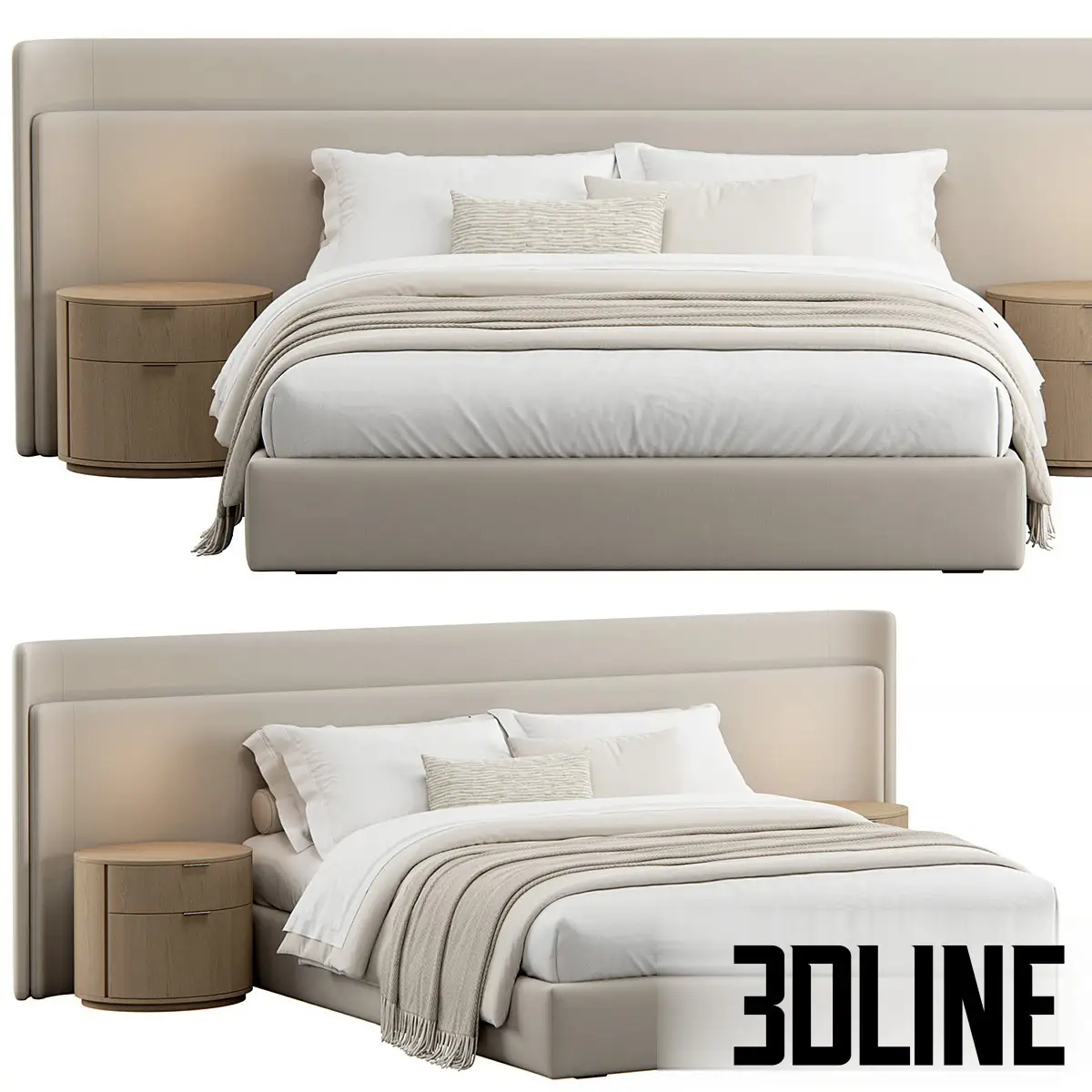 Contemporary Upholstered Rounded Headboard Bed(3dline.net)