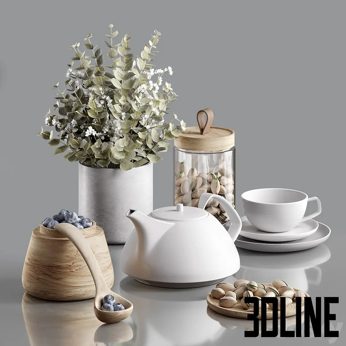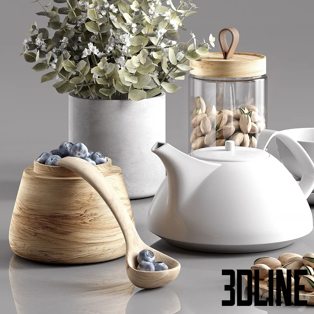 Decorative set with blueberries(3dline.net)