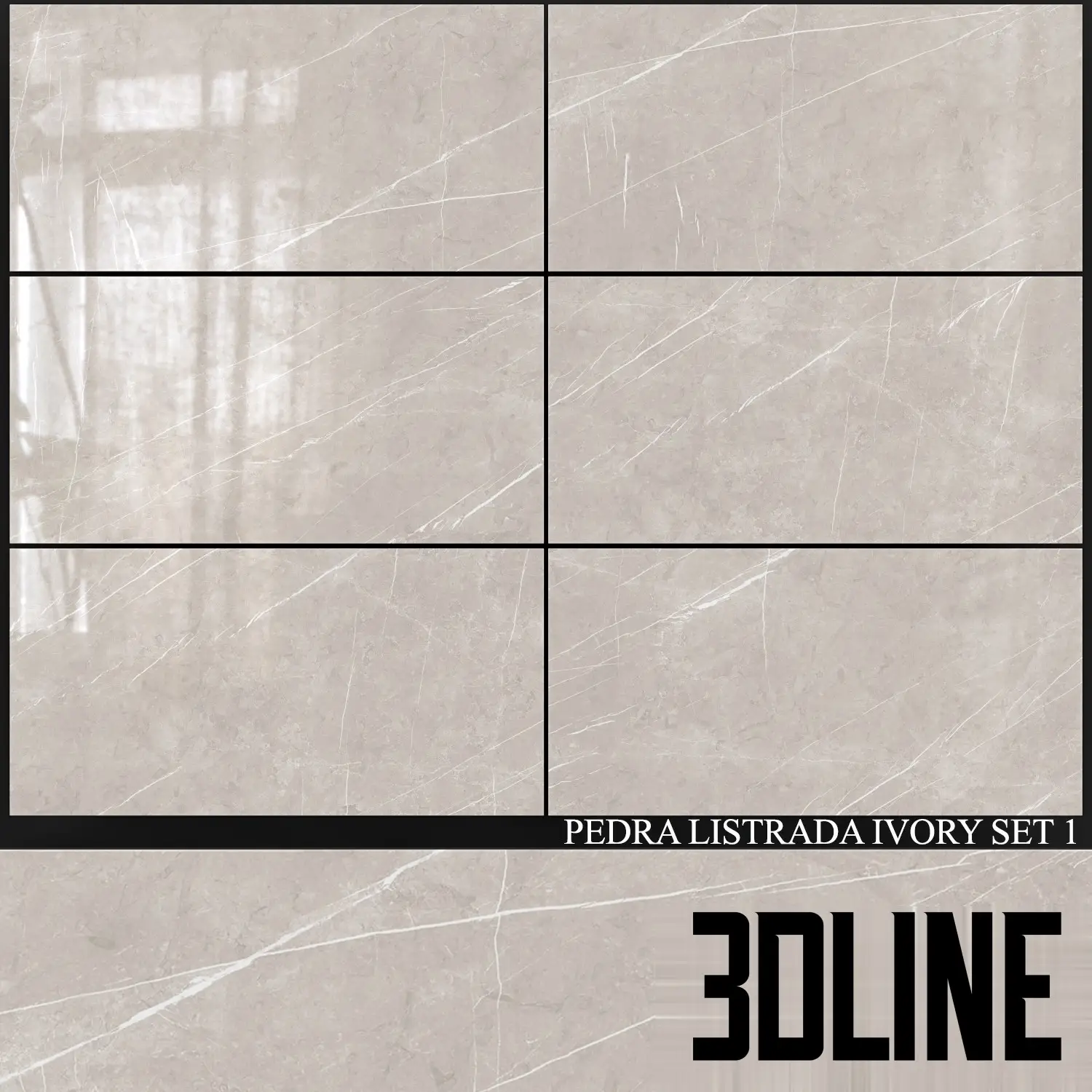 Achieve a look of understated luxury with the Decovita Pedra Listrada Ivory Tile 3D model. This asset replicates a high-end polished stone surface, characterized by a soft ivory/light grey background crisscrossed with delicate, lightning-like white veins. The large-format design expands visual space, making it ideal for grand lobbies, modern bathrooms, or expansive living room floors. The set includes multiple unique tile faces to ensure a natural, non-repetitive installation.