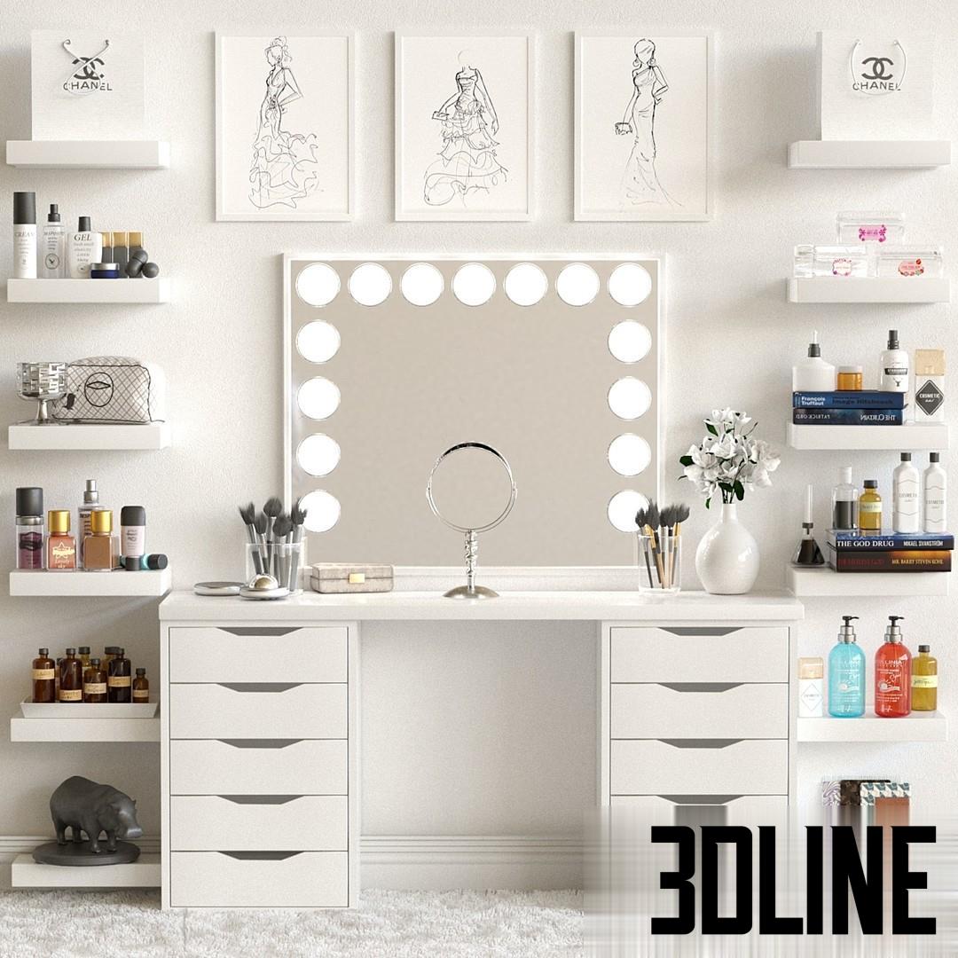 Dressing table and shelves with cosmetics Makeup 3(3dline.net)
