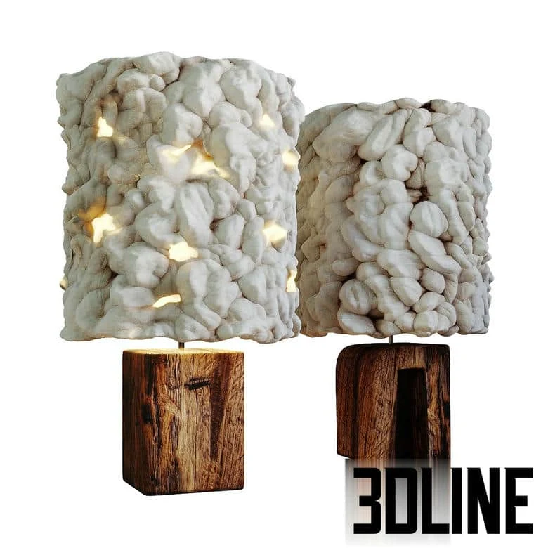 **Rustic floor lamp 3d model Helen Loom:** Bring unique texture and warmth to your renders with this exclusive **rustic floor lamp 3d model Helen Loom**. This **organic sculptural texture light** features a natural wood block base and a striking, cloud-like shade, making it a perfect **unique wood base standing lamp** for modern farmhouse, wabi-sabi, or cozy interiors. The textured shade provides a soft, atmospheric light diffusion.