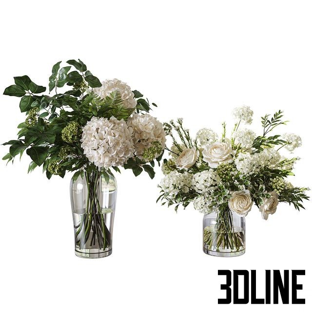 Home Plants Bouquet Flower Set 060 Hydrangea Rose 0(3dline.net)