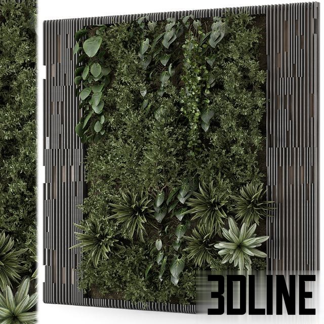 Indoor Wall Vertical Garden in Wooden Base – Set 1395 0(3dline.net)