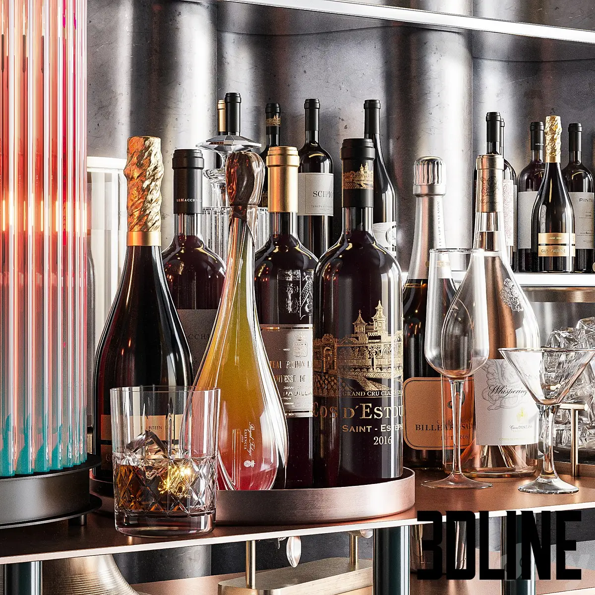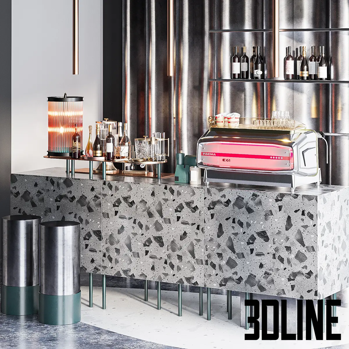 3dline – Reception Desk for Restaurant and Caffe with cabinet wine rack set 08 0
