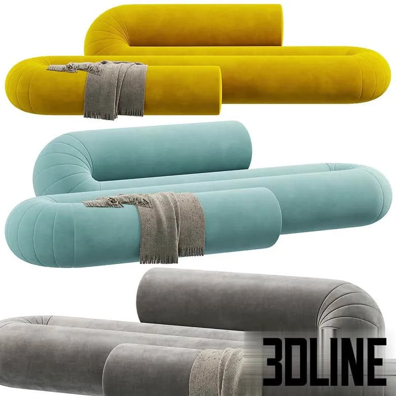 **Serpentine Modular Sofa 3D Model:** Make a statement in your visualizations with this exclusive **Serpentine modular sofa 3d model** by DANTE Goods And Bads. This **contemporary tube couch** features a bold, sculptural design and comes in multiple color/texture options (velvet, fabric), making it essential for architects and designers creating artistic, high-end commercial or residential spaces. The included throw blanket detail enhances the realistic visualization.