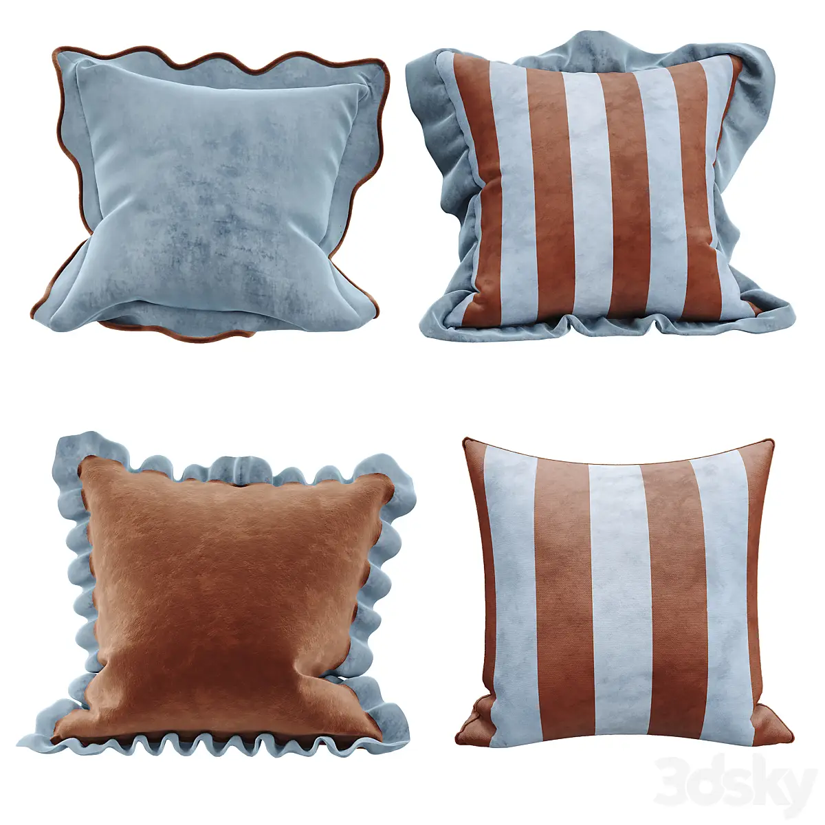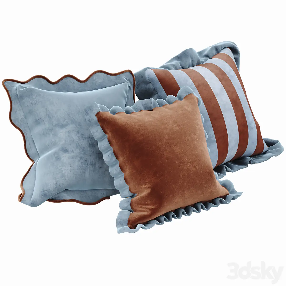 Set of velvet striped decorative pillows(3dline.net)