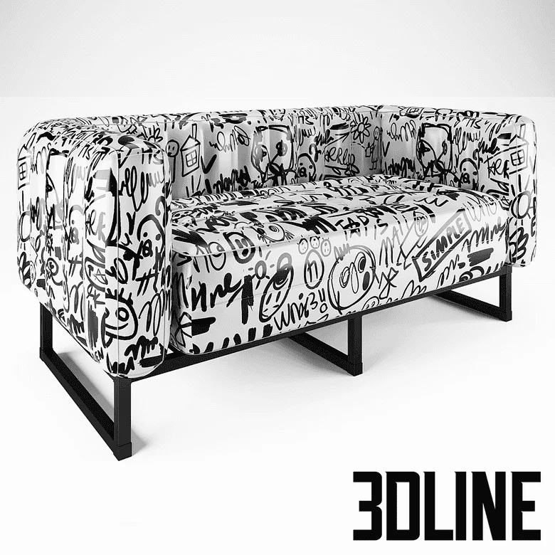 **Mojow YOMI NEP sofa 3d model:** Make a bold artistic statement in your visualizations with this exclusive **Mojow YOMI NEP sofa 3d model**. This eye-catching **inflatable graffiti print couch** features a unique clear vinyl shell and an artistic black and white design, making it an essential **unique clear vinyl furniture** asset for gallery, retail, or high-concept interior projects. The model is perfect for creating playful, contemporary scenes.
