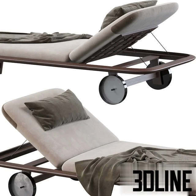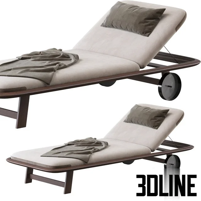 **Tellaro sun lounger 3d model:** Define high-end relaxation in your exterior visualizations with this exclusive **Tellaro sun lounger 3d model** by Exteta. This **luxury outdoor chaise lounge** features an adjustable backrest, a refined wooden frame, and comfortable upholstery, making it essential for designers working on pool decks and resort balconies. The **Exteta modern pool chair** is fully detailed, including realistic wheels and throw blanket.