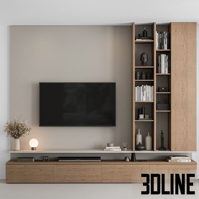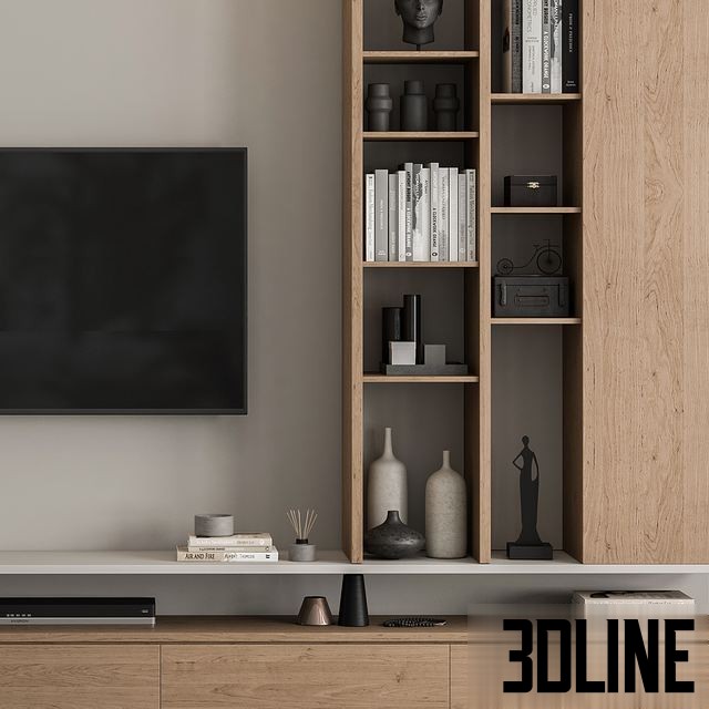 TV Wall White and Wood – Set 69 0(3dline.net)