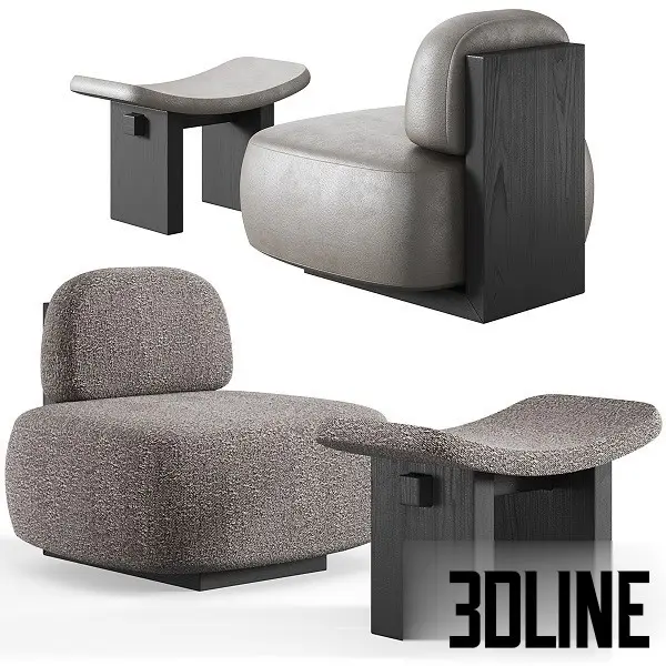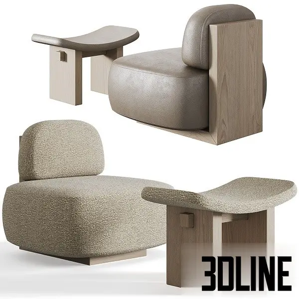 Infuse your interiors with the serene, architectural beauty of the Yoshida Chair and Nara Stool 3D model set. Inspired by Japanese joinery and minimalism, these pieces by Secolo feature a distinctive “slab” construction. The Yoshida Chair showcases a plush, rounded seat and backrest held by a vertical wooden spine, while the Nara Stool mirrors this aesthetic with a curved upholstered top on a sturdy T-shaped wood base. The set includes variations in smooth grey leather and textured beige bouclé fabric.